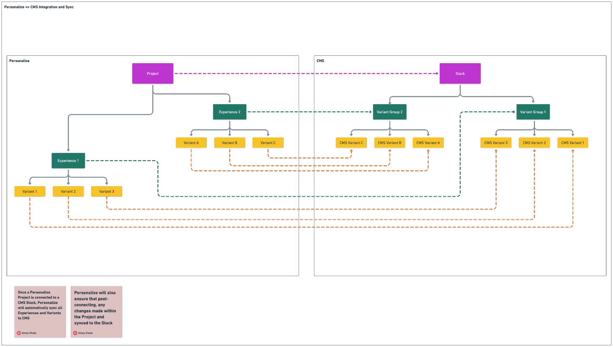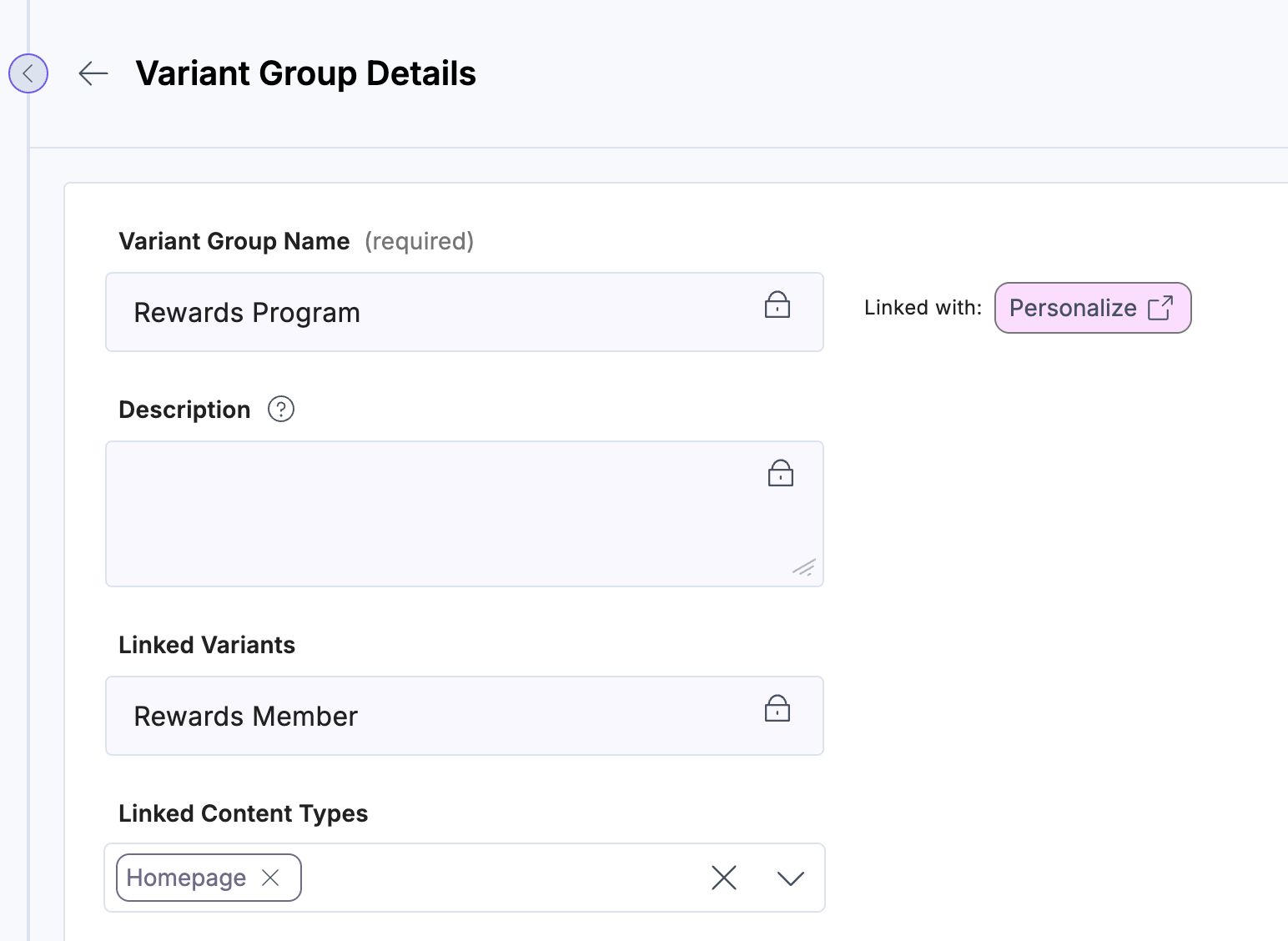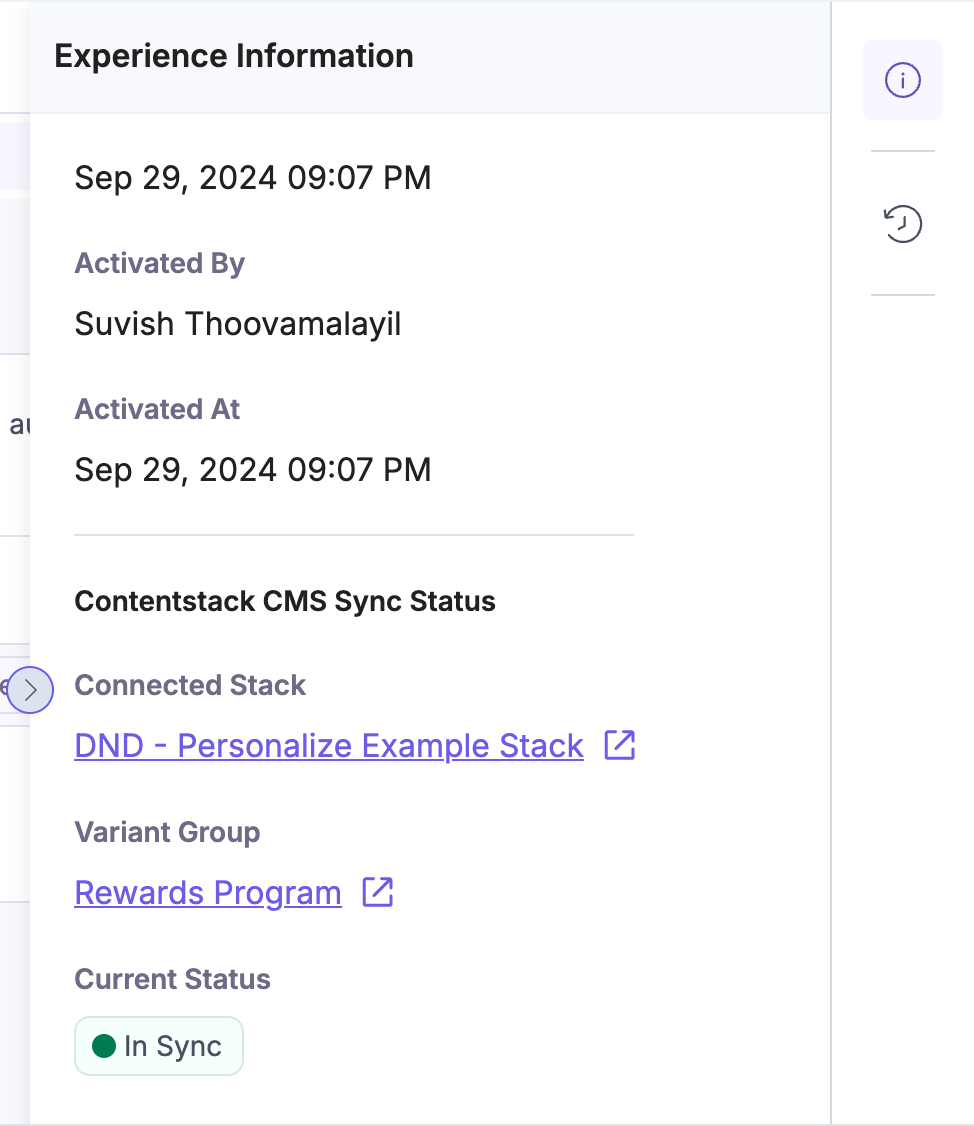 To create personalized content, the Variants feature available in the connected CMS stack helps you compose content variants corresponding to each of the Variants in Personalize Experiences. If a Personalize Project is connected to a CMS stack, all relevant changes made within the project automatically sync to the CMS for you to create content.